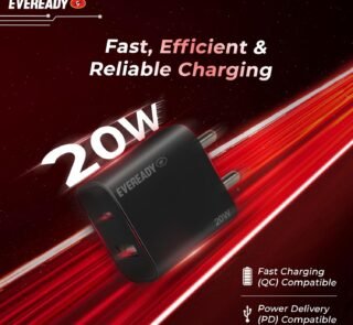 Eveready 20W USB Type C Fast Charger with Dual Device Charging Compatibility,Compact & Travel-Friendly Design