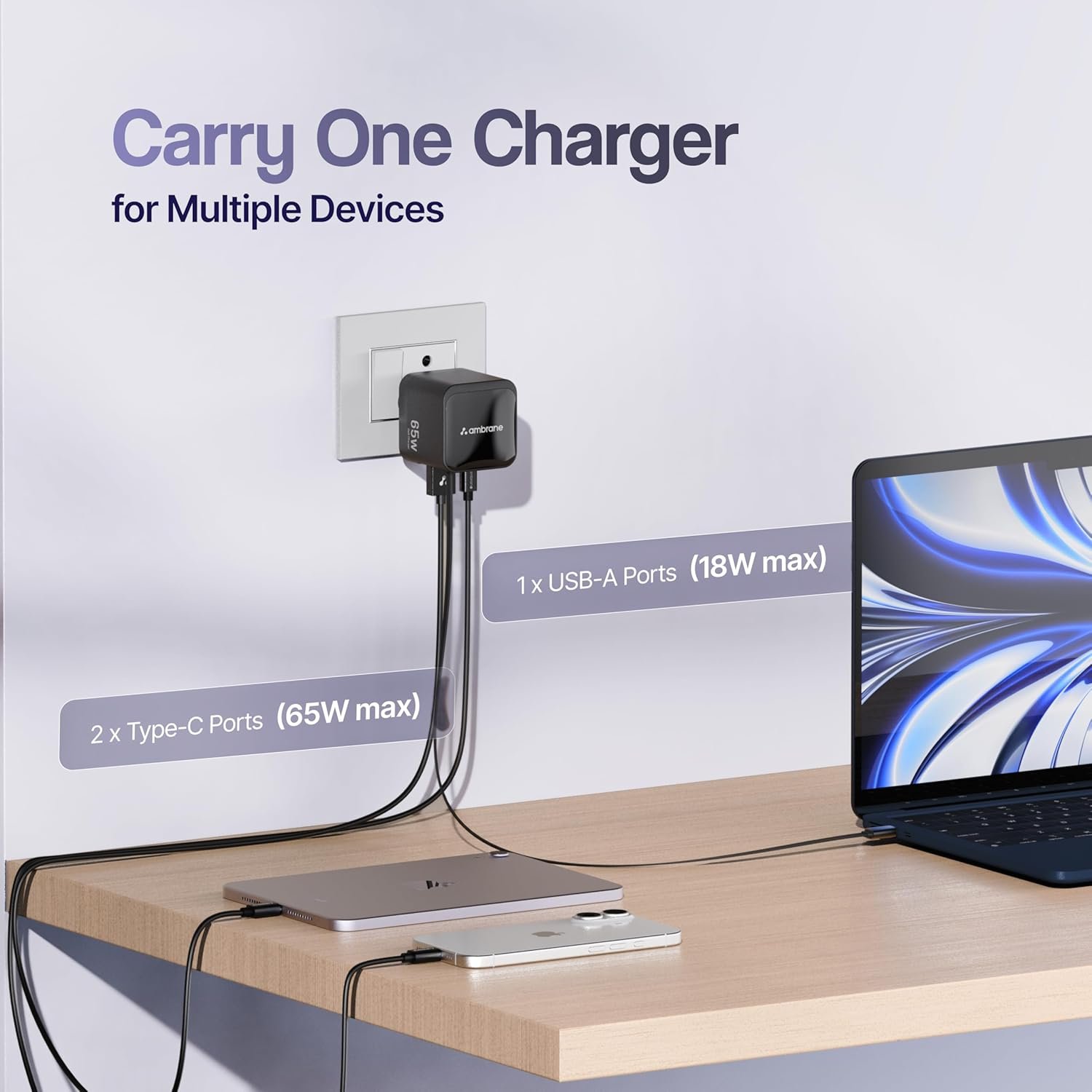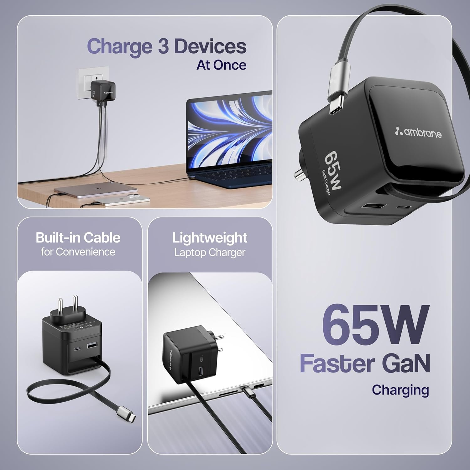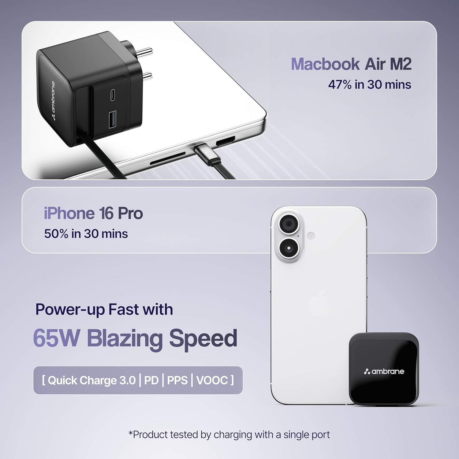 - 65W BoostedSpeed: Enjoy super-fast charging and less charging time with 65W GaN power.