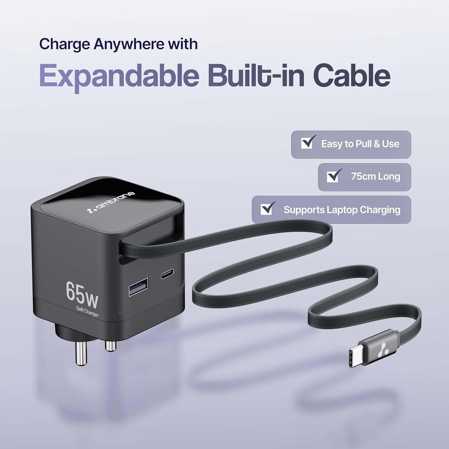 - Built-in Cable: No need to carry additional cables, Charge R65 comes with a retractable Type-C cable so you can charge with ease.