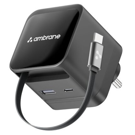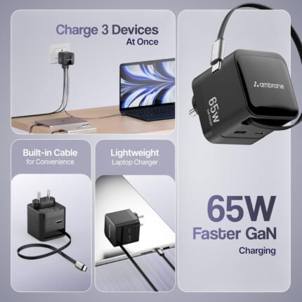 Ambrane 65W GaN Superfast Wall Charger with Type-C Cable, 65W Output Compatible with MacBook & Type-C Laptop Charging, iPhone, Samsung, OnePlus, Nothing