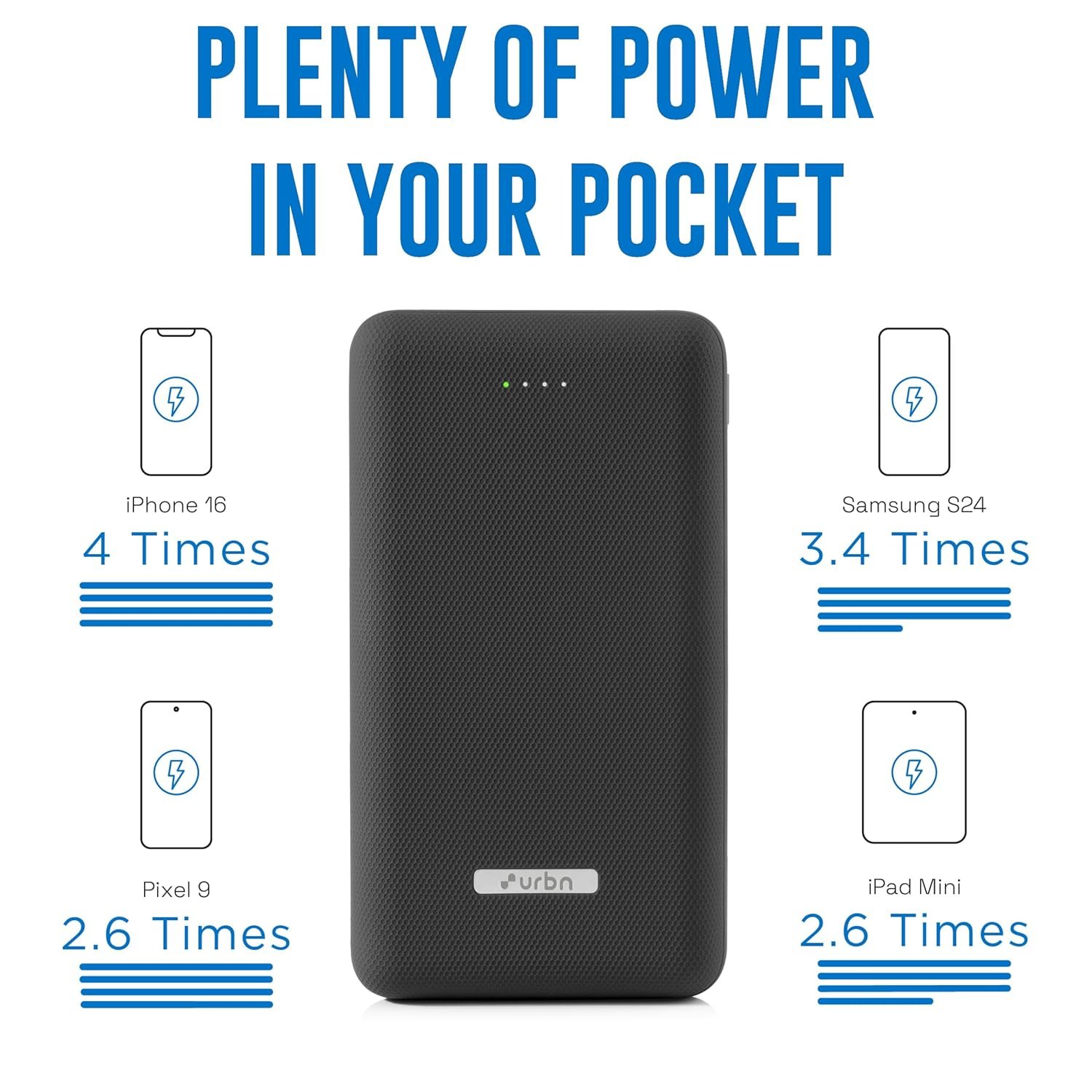 • Made in India — Quality You Can Trust: Proudly designed and manufactured in India, the URBN power bank combines durability, premium performance, and ethical craftsmanship in one powerful package.